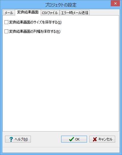 この項目にチェックをすると、変換結果画面の大きさと位置を保存することができます。