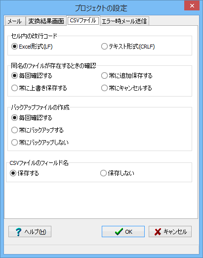 CSVファイルを保存する時に同名のファイルが存在する場合に既存のファイルをバックアップするかどうかを設定します。