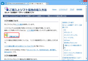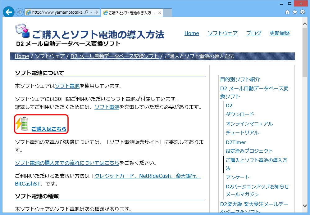 ソフト電池の購入方法を説明するページが表示されます。
