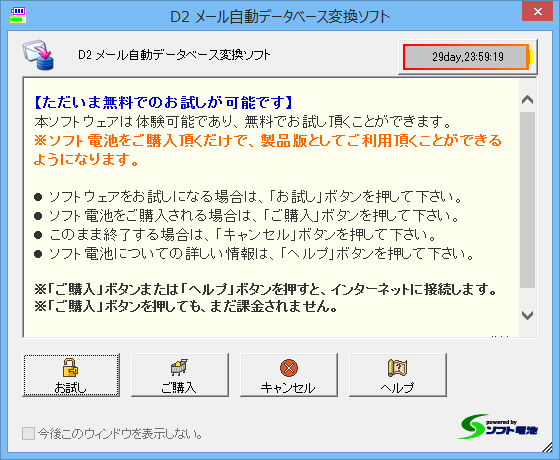 Top / ソフトウェア / D2 メール自動データベース変換ソフト / オンラインマニュアル / ご購入について