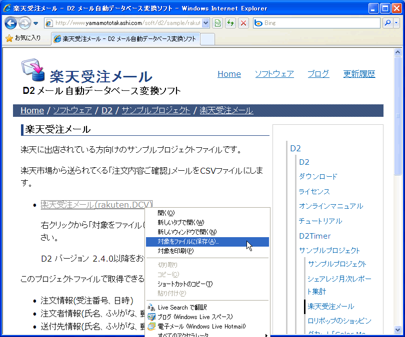 楽天受注メールを解析するサンプルプロジェクトの使い方を説明します。