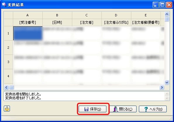 「保存」ボタンを押し、CSVファイルに保存します。