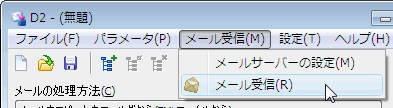 メニューの「メール受信」-「メール受信」を選択、または「メール受信」ボタンを押します。