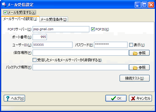 Gmailからメールを受信するには次のように設定します。