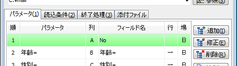 行番号列のパラメータは背景色が緑色で表示されます。