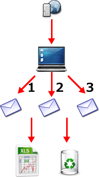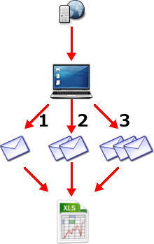 (メールを1通ずつ3回受信したとき、1回目に受信したメールは3回CSVファイルに変換されます)