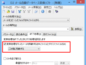 D2は「メールの保存場所」にあるメールをすべて変換します。 そうすると同じメールを何度もCSVファイルに変換することになります。