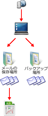 メールサーバーからメールを受信すると「メールの保存場所」にメールがたまっていきます。