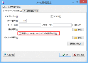 メールの受信設定で「受信したメールをメールサーバーから削除する」にチェックをしなければ、メールはメールサーバーに残ります。