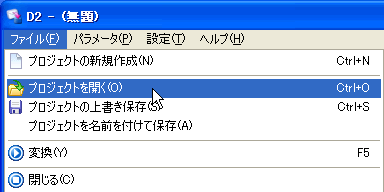 D2を起動して、メニューの「ファイル」-「プロジェクトを開く」を選択します。