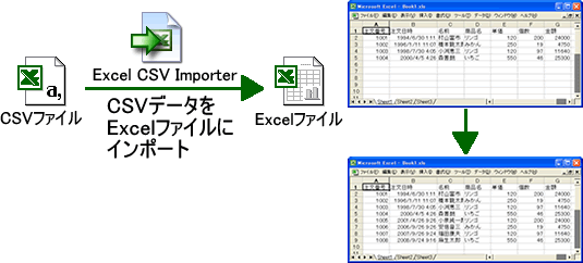 Excel CSV Importerは、ExcelファイルやAccess データファイルにCSVファイルのデータをインポートするソフトです。