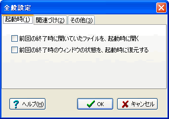 チェックすると、前回の終了時に開いていたファイルを、起動時に開きます。