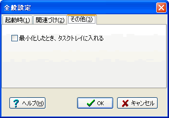 チェックすると、最小化したときタスクトレイに入れます。