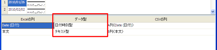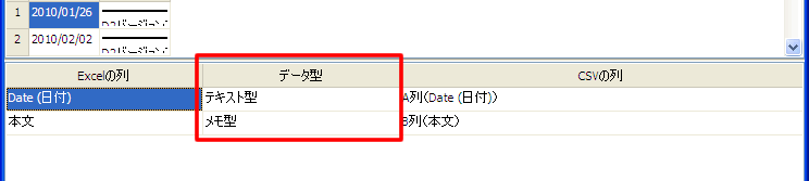 データ型はワークシートの先頭の8行のデータから推測されます。