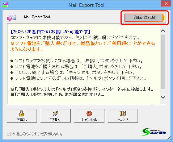 ソフトウェアには30日間ご利用いただけるソフト電池が付属しています。