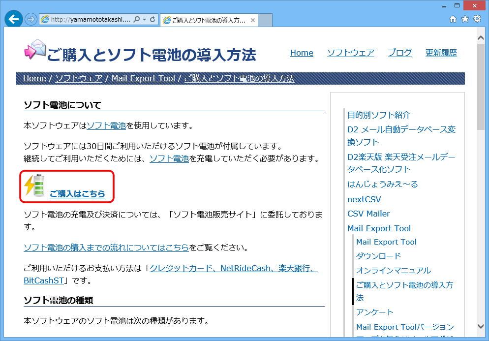 ご購入とソフト電池の導入方法本ソフトウェアはソフト電池を使用しています。