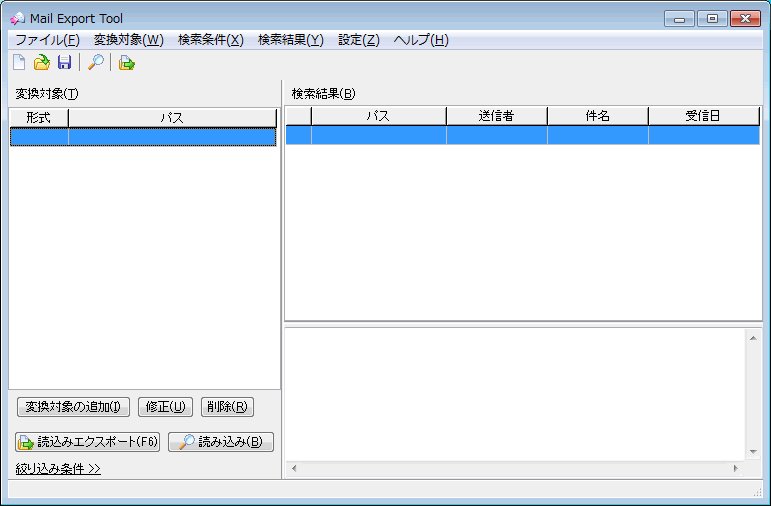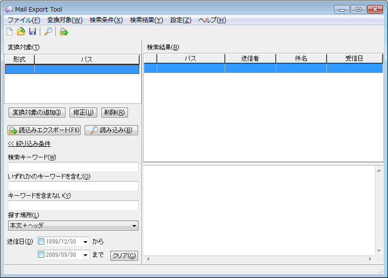 絞り込み条件が指定されていない場合は、変換対象のすべてのメールが表示されます。