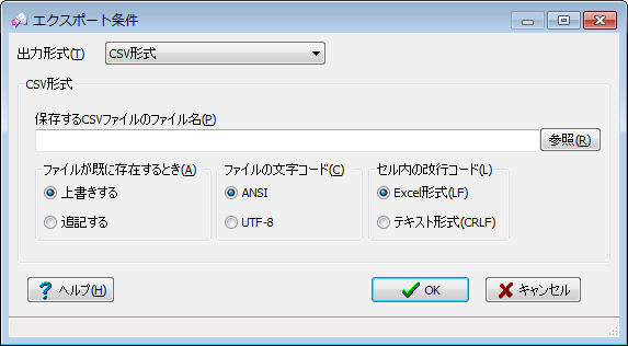 追記するを選択すると、ファイルの末尾に追記してエクスポートします。