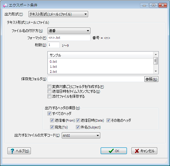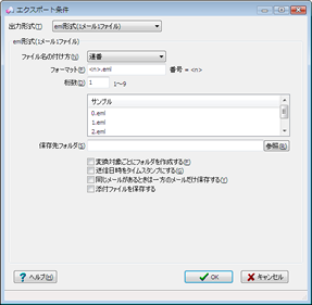 チェックを入れると、エクスポートしたファイルのタイムスタンプはメールの送信日時と同じになります。