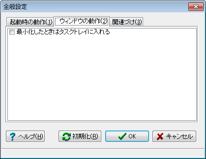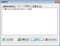 チェックを入れると、メイン画面を最小化したときタスクバーに表示しないで、タスクトレイに入れます。