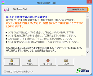 ソフトウェアには30日間ご利用いただけるソフト電池が付属しています。