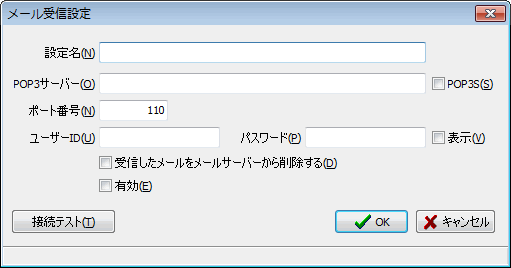 メール受信設定の設定名を入力します。