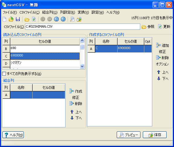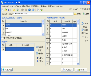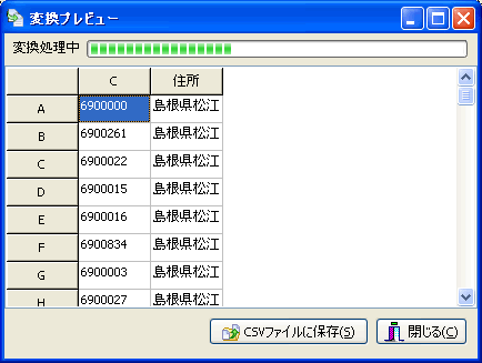 変換プレビュー画面が表示され、作成されるCSVファイルが表示されます。