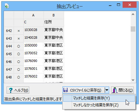抽出条件にマッチしなかった結果をファイルに保存します。