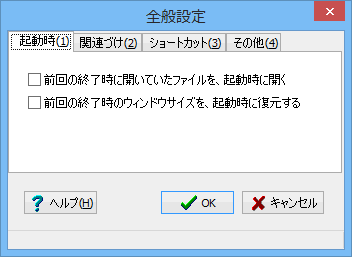 チェックすると、前回の終了時に開いていたファイルを、起動時に開きます。