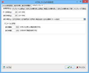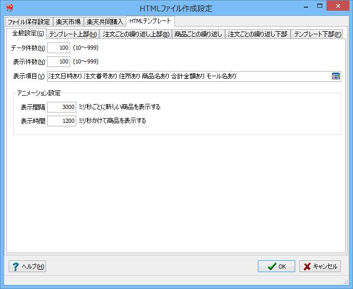 HTMLファイルに登録する注文データの件数を設定します。