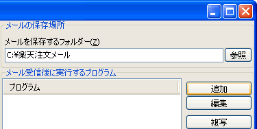 => 「メール受信後実行プログラム編集画面」が表示されます。