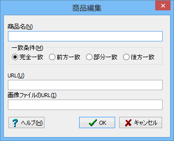 メールから取り込んだ商品名と比較する条件を指定します。