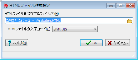 作成したHTMLファイルを保存するファイル名を指定します。