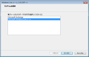 「Microsoft Windows Live メール」を選択して、「次へ」ボタンを押します。