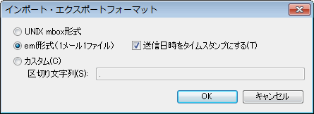 「eml形式(1メール1ファイル)」をチェックして、「OK」ボタンを押します。
