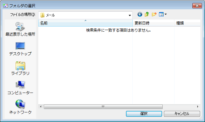 「フォルダの選択」ダイアログが表示されます。